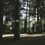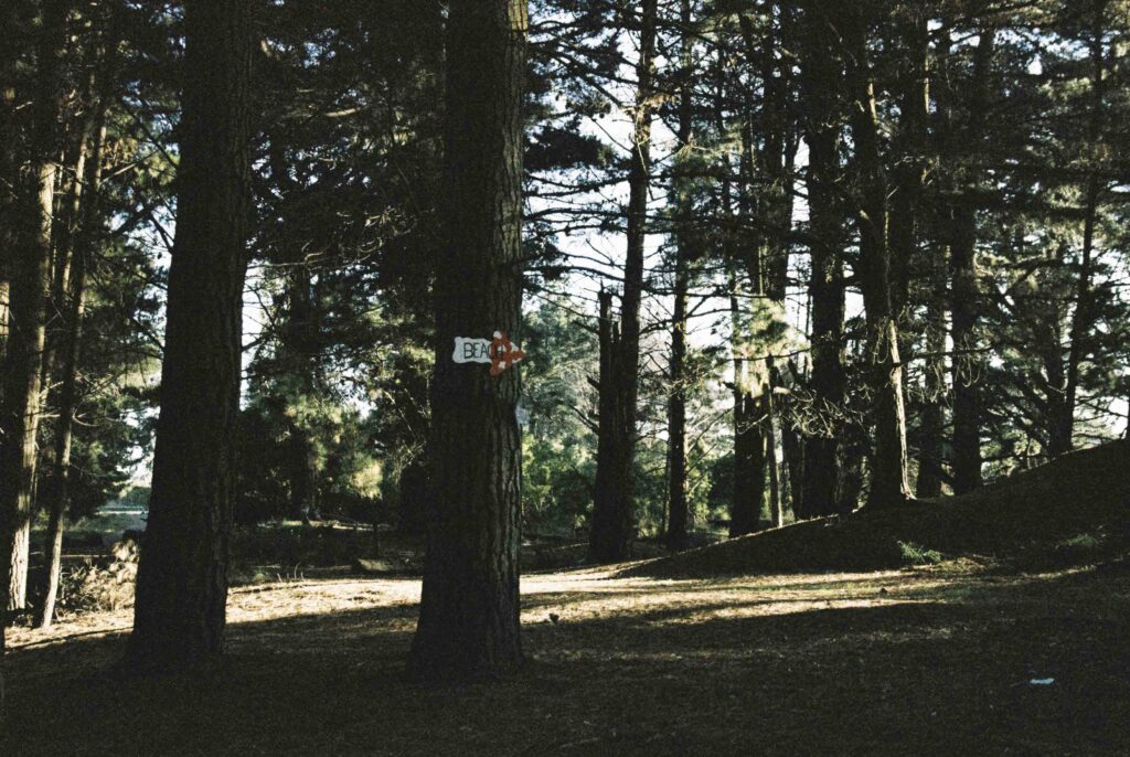 Wide angel shot of the ribbons going between the trees in the forest at TwoMinds 2026