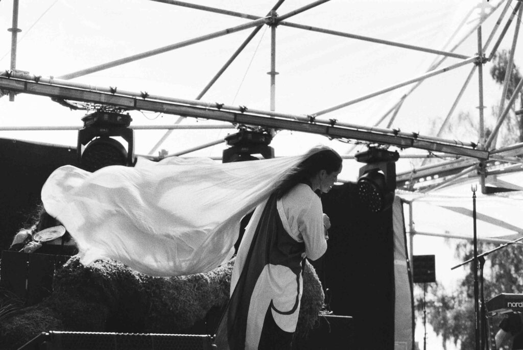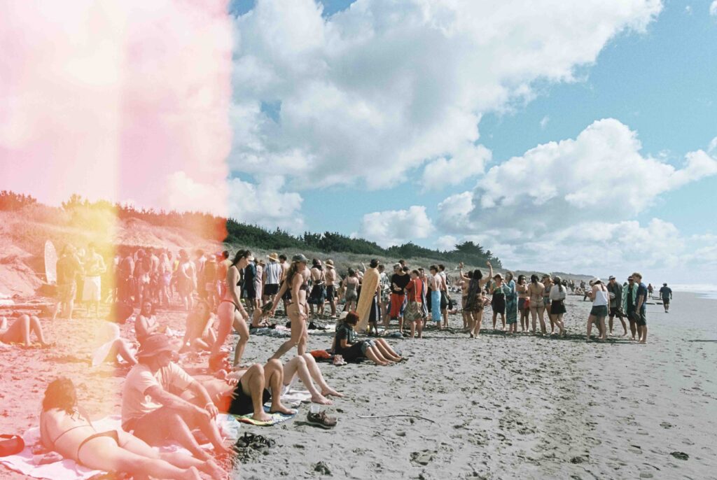 The beauty of the festival taking place at Spencer Beach Top 10 Holiday Park is it’s proximity to the ocean. At 10am on Saturday, campers walked through the pine forest for yoga on the beach and a swim. Shaquille, known by her DJ name Half Queen, guided the group through the flow just hours after her own DJ set. “Yoga and DJing are the same blueprint, it’s all about leading people into movement,” she said. When asked what drew her to the festival, she commented on its diversity: “It’s an independent DIY gig and I really fuck with the Kaupapa and how every year it gets more diverse with artists from overseas.”